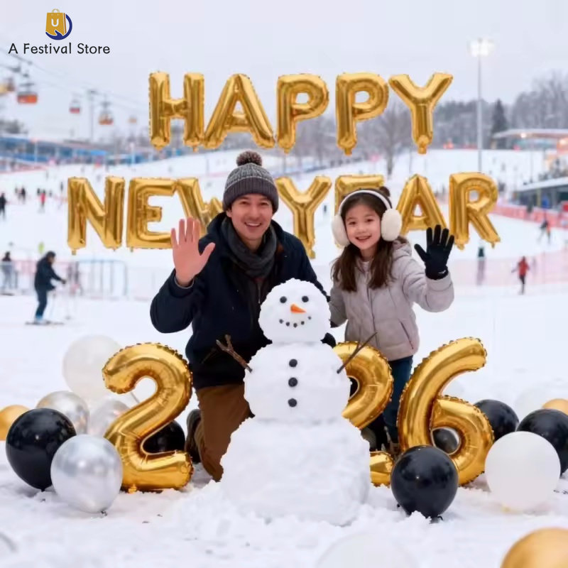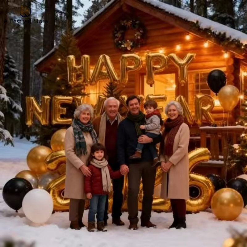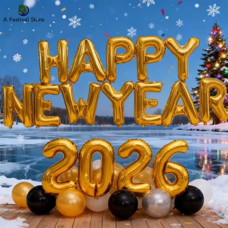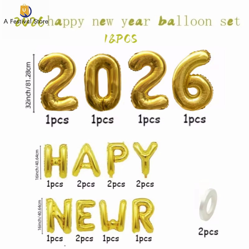Year Themed Gold Happy Number 32inch New Set 2026 Balloon