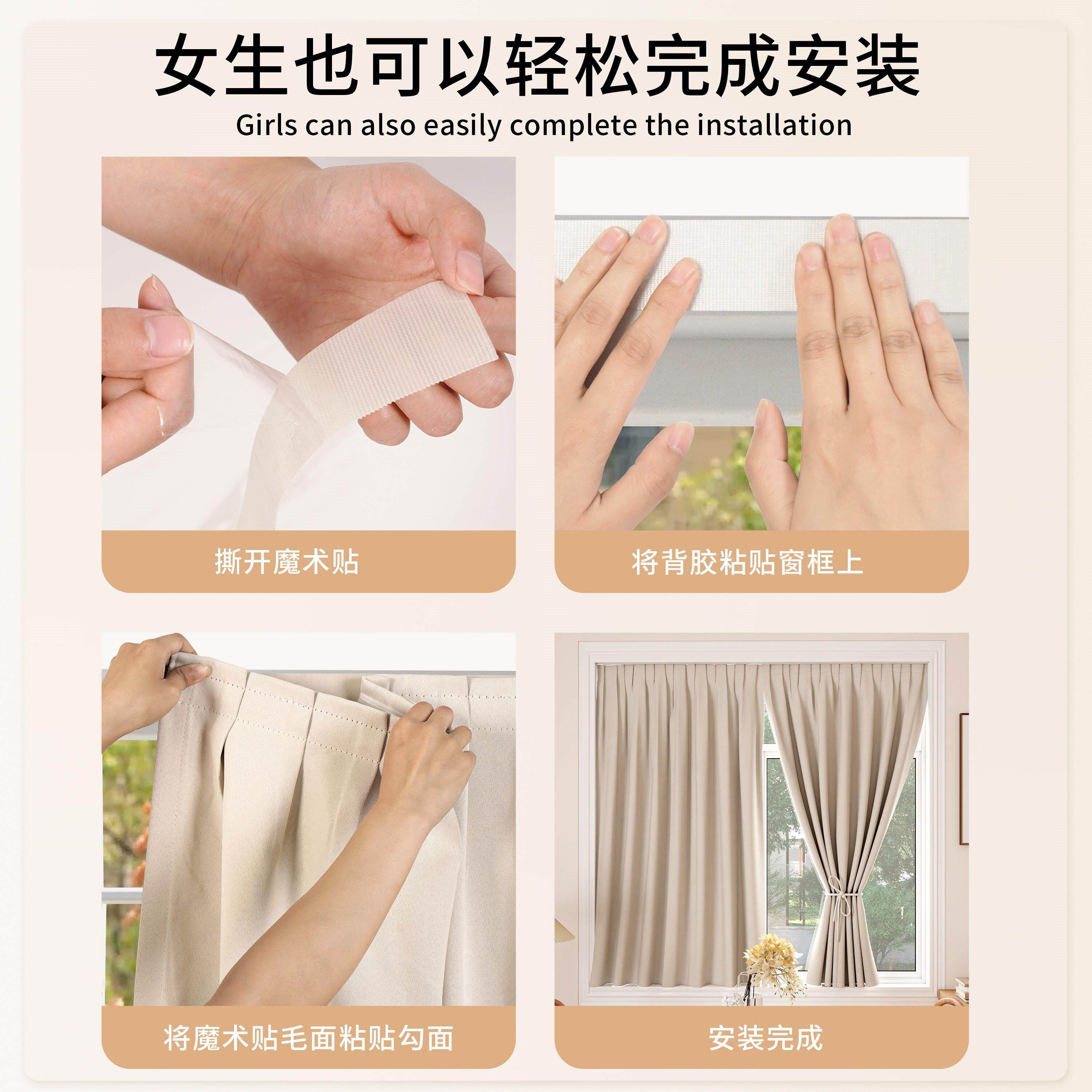 2025新款 全遮光窗帘遮阳布卧室成品阳台隔热防晒窗户简易帘免打孔