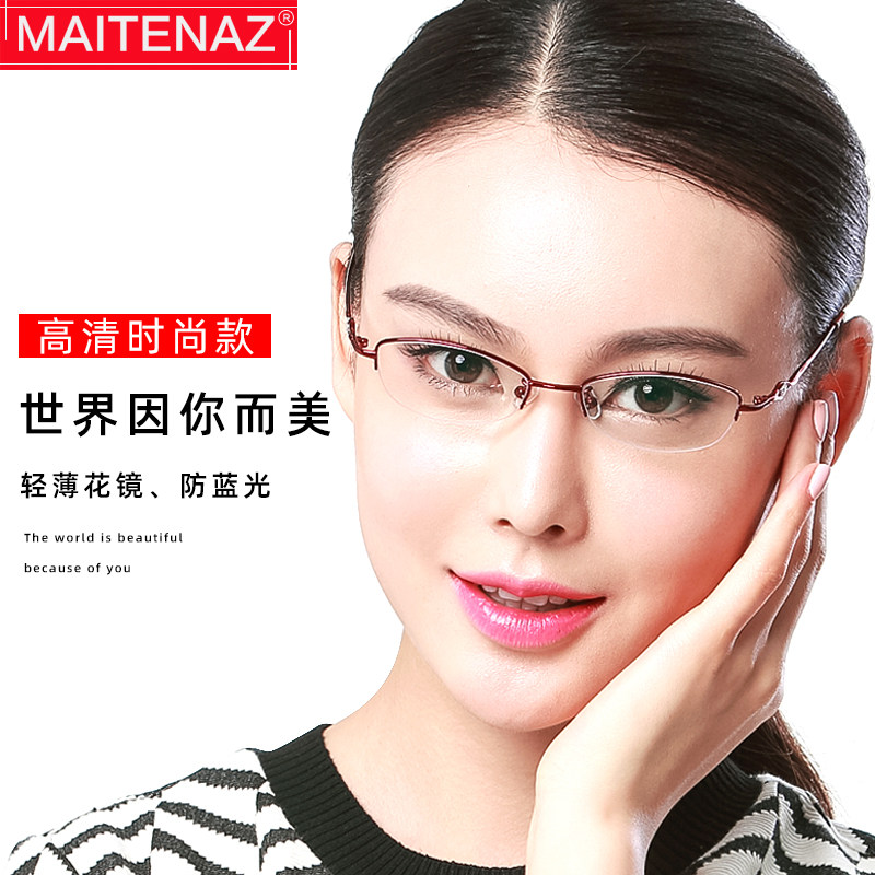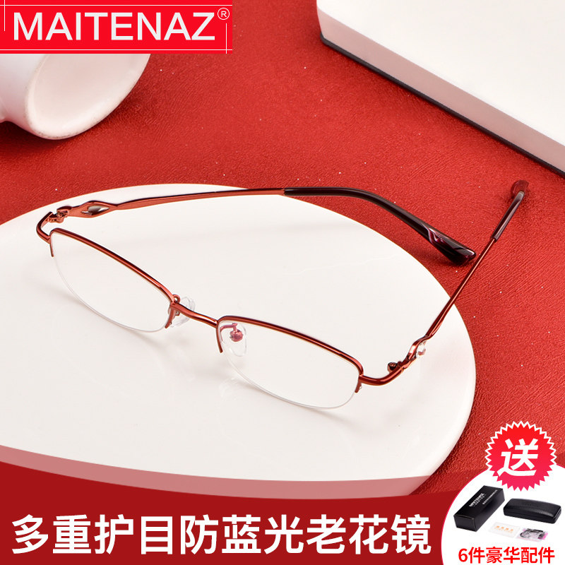 防蓝光老花眼镜女士品牌高档正品 官方旗舰店高清中老年人超轻时尚