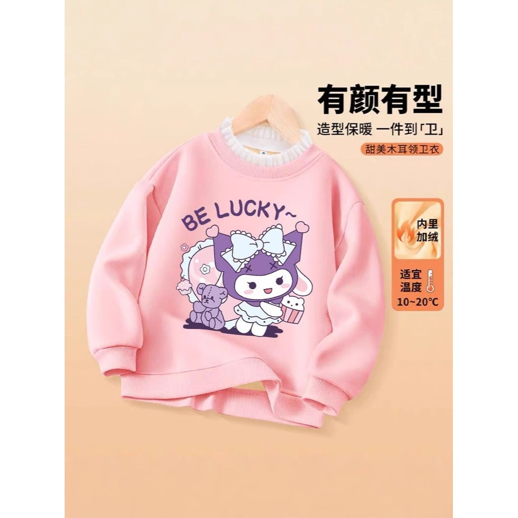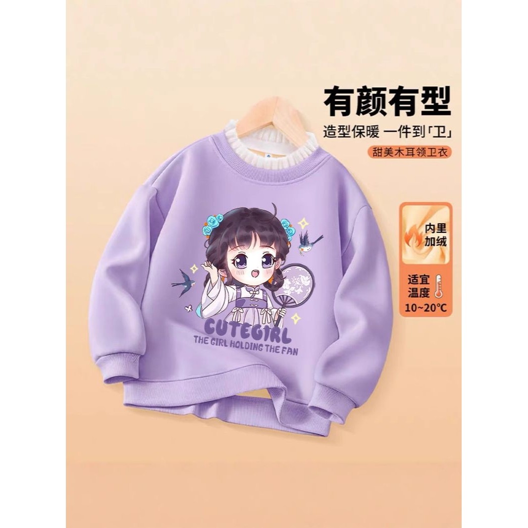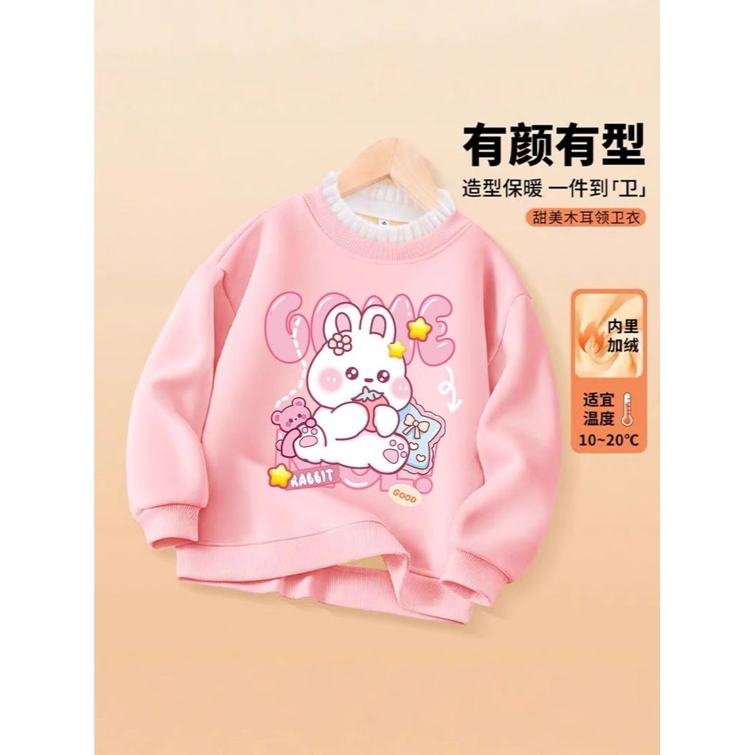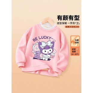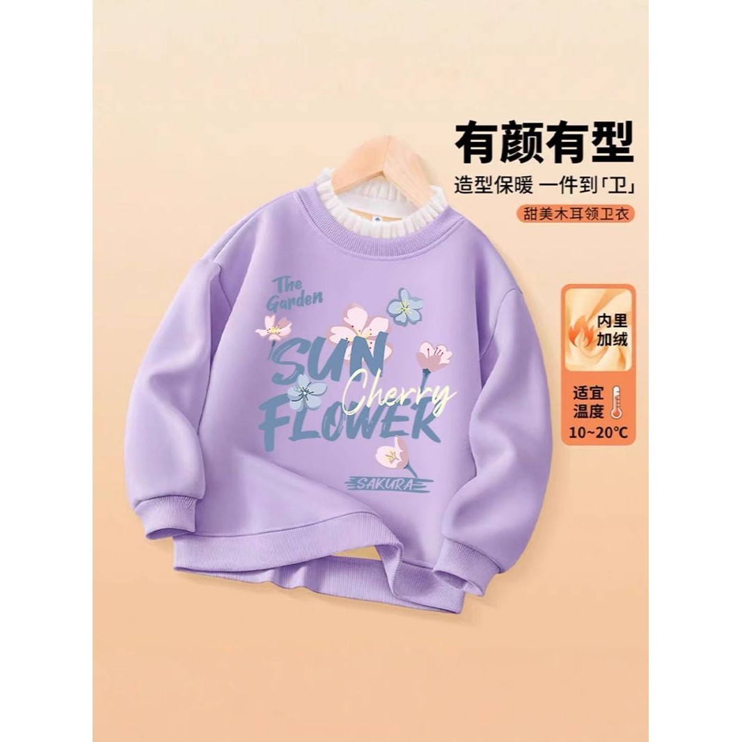 女童卫衣冬季 儿童加绒蕾丝花领衣服女孩洋气保暖加厚上衣 新款