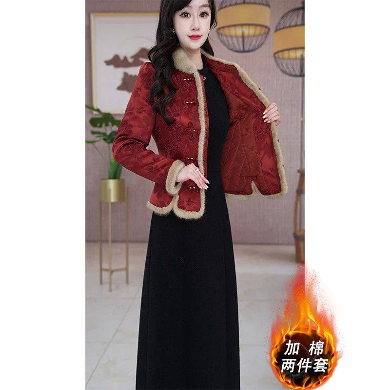 红色喜庆优雅休闲收腰显瘦保暖套裙 冬季 2025新款 今年流行爆款