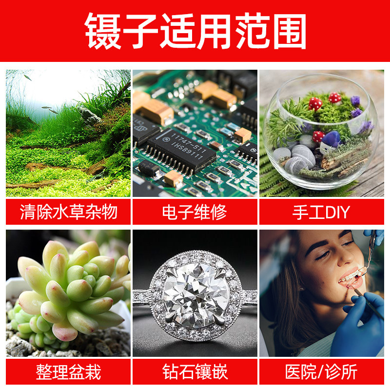高精密尖头镊子不锈钢手机维修防静电弯头扁头工具夹子圆头神器