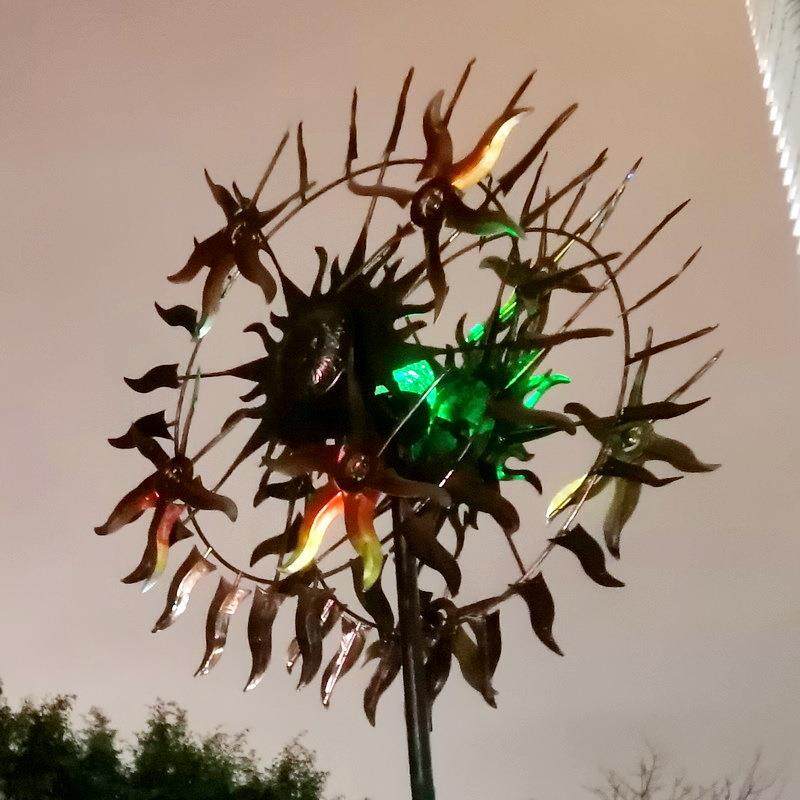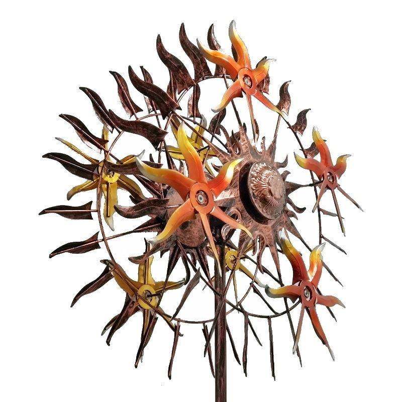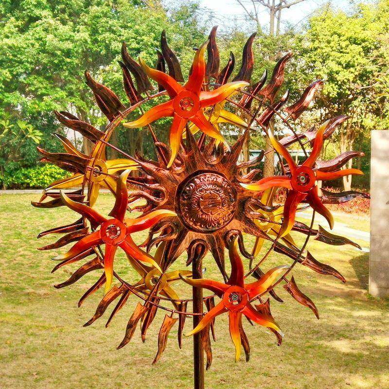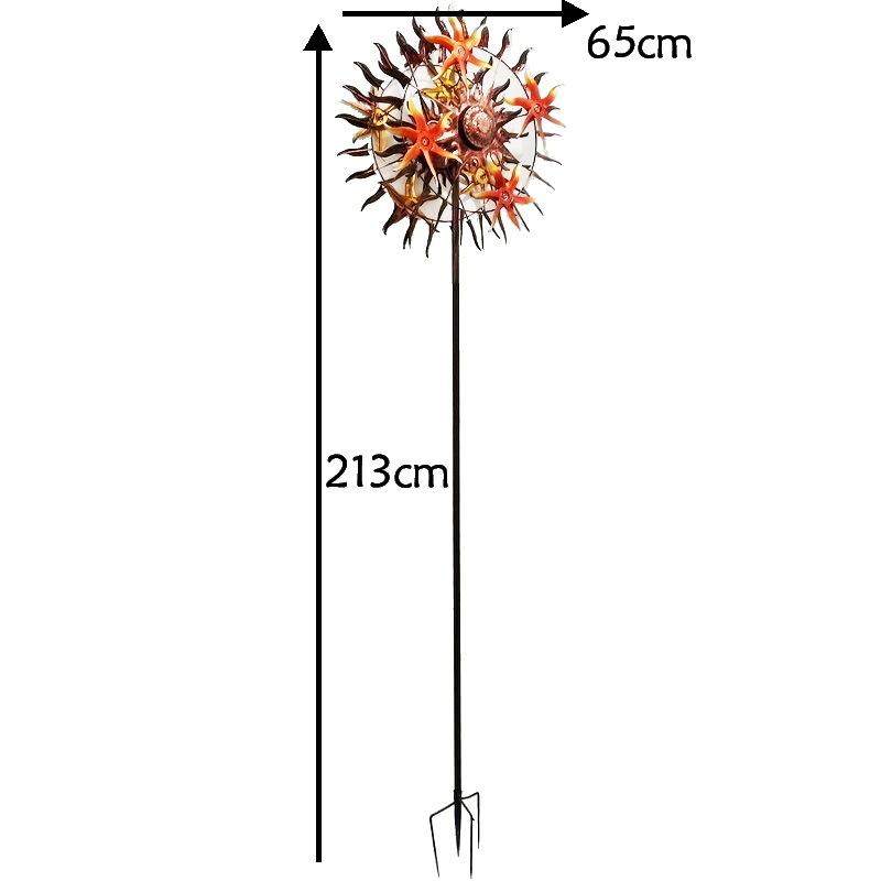 户外家居装 饰外贸金属摆件铁艺工艺品太阳神旋轮大风车带太阳能灯