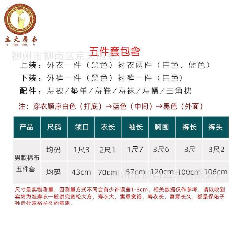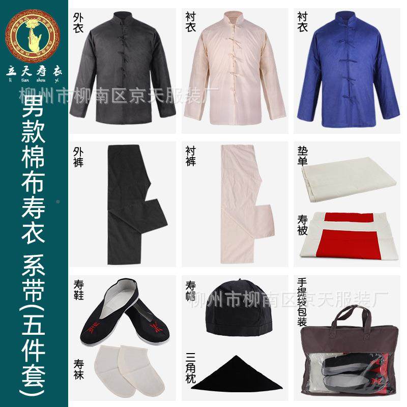 寿袜棉布带 老纯衣寿衣白人事衣服寿寿鞋 被男款 522五件套厂家唐装