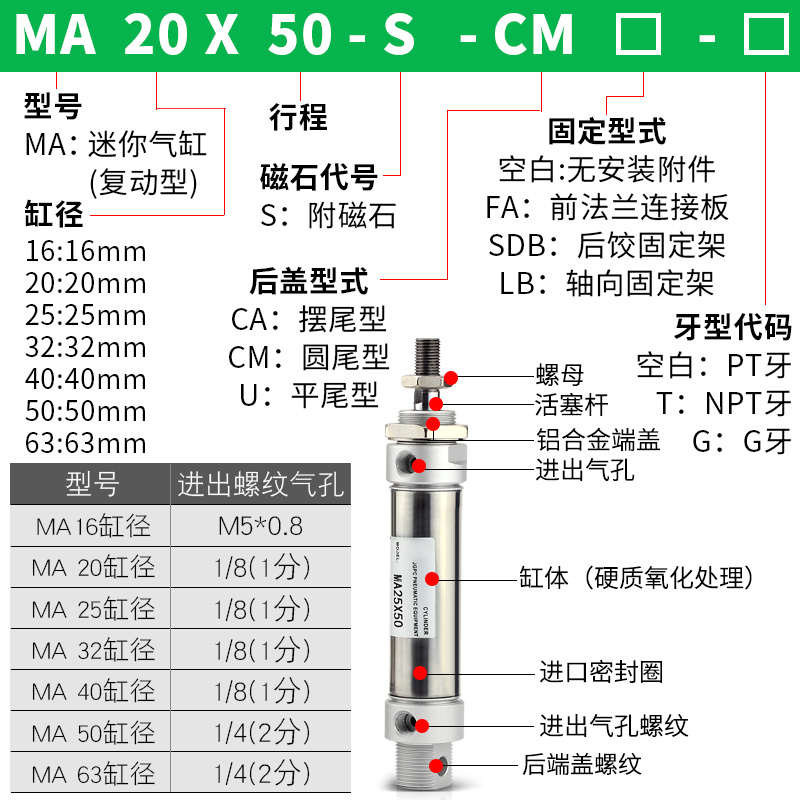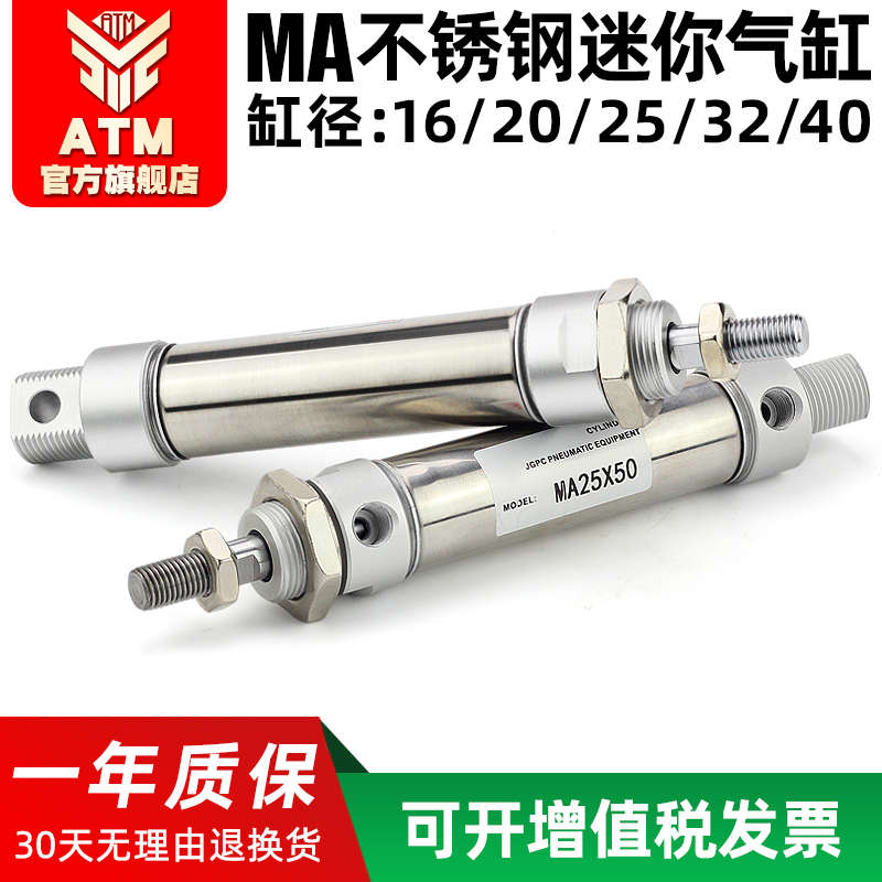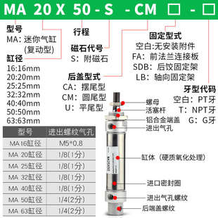 气动迷你不锈钢笔型气缸MA20 50x75x100x125x150