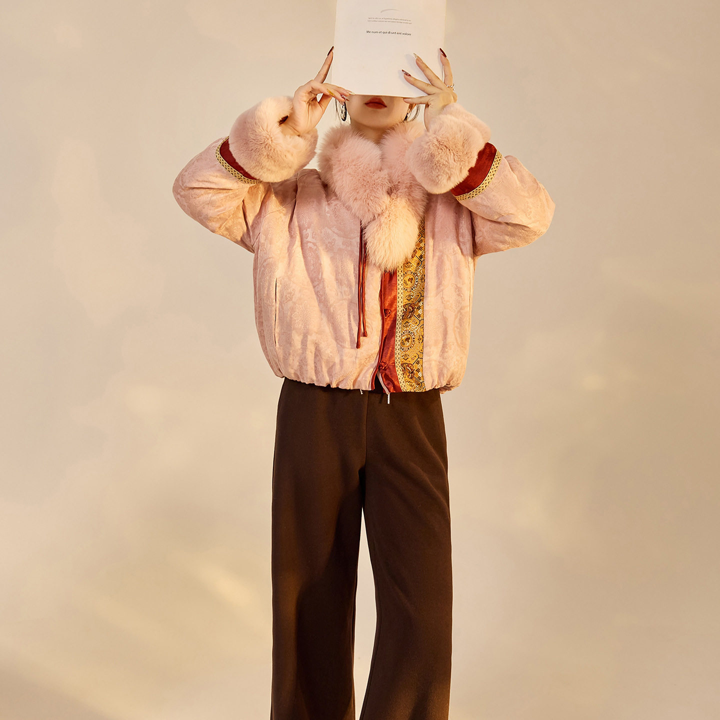 时尚 鸭鸭羽绒服女2025年秋冬新品 拼接连帽保暖外套 鞠婧祎同款