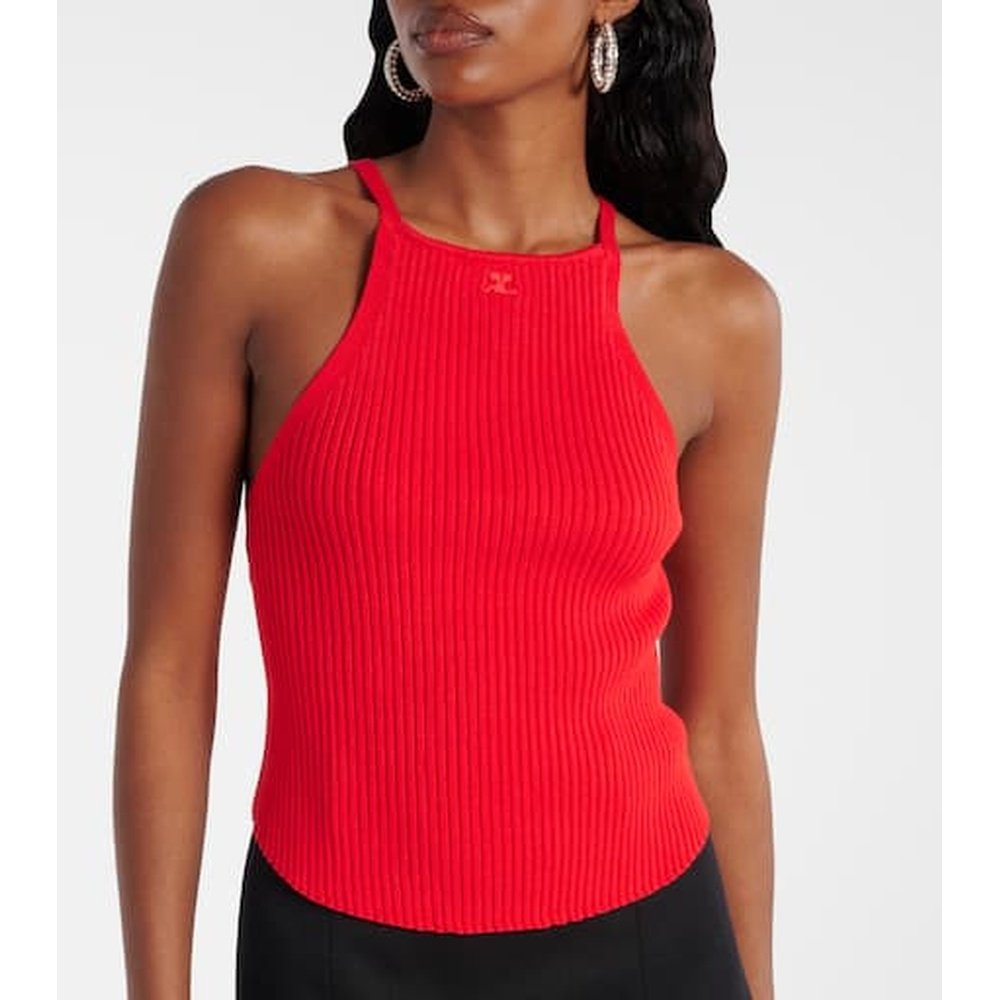 圆形徽标罗纹针织背心上衣 女士 1h可退 香港直邮Courreges