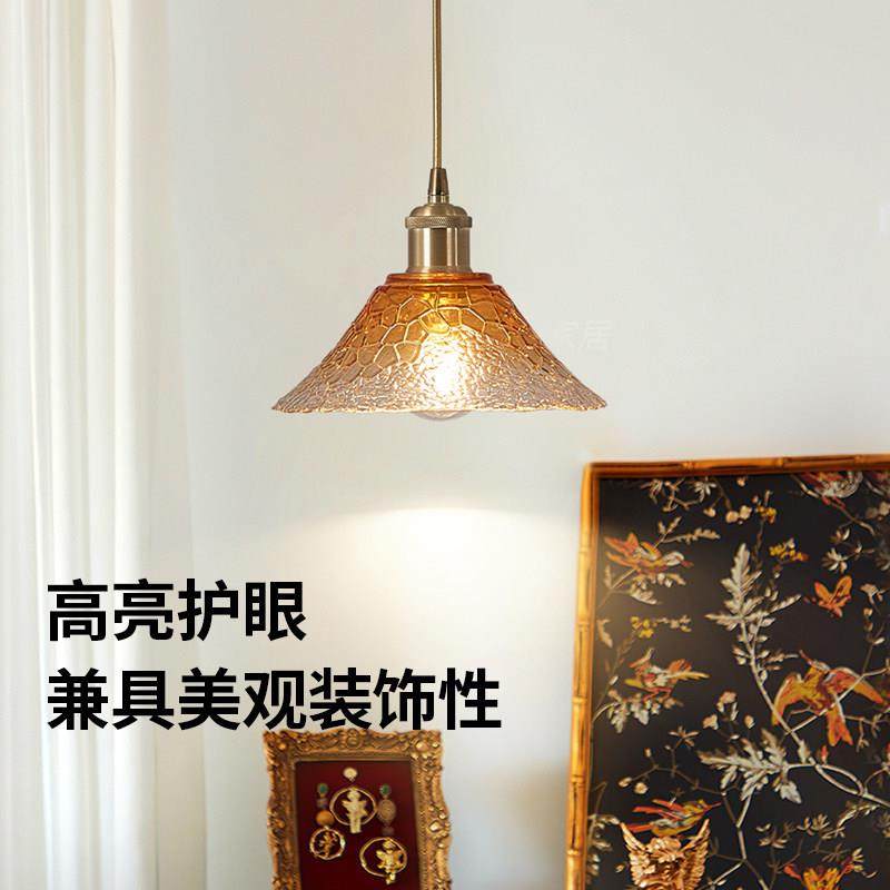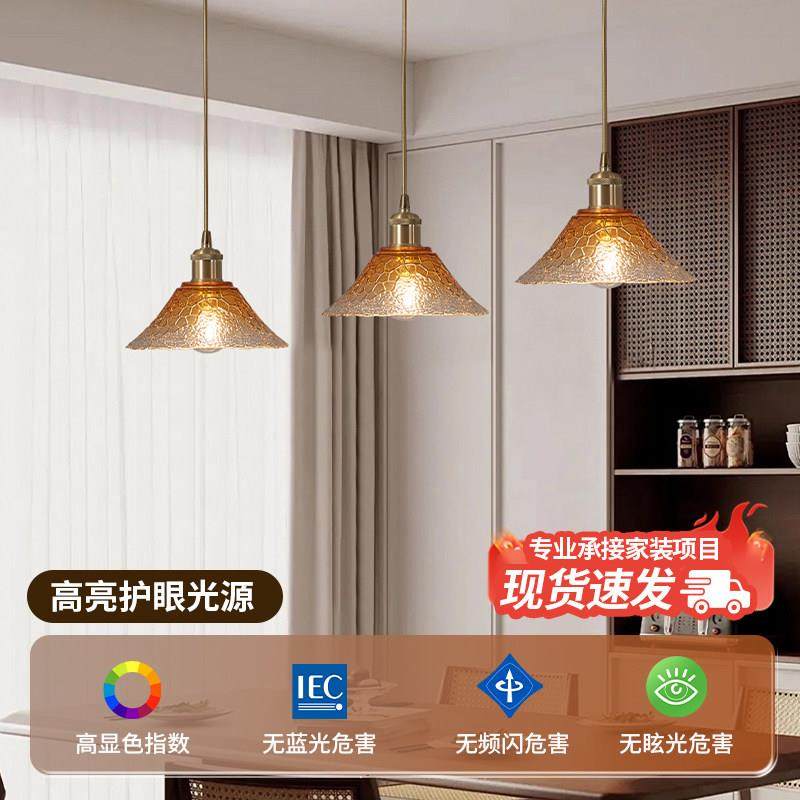繁简中古风玻璃吊灯复古藤编艺术客厅餐厅卧室灯新款 奶油餐厅吊灯