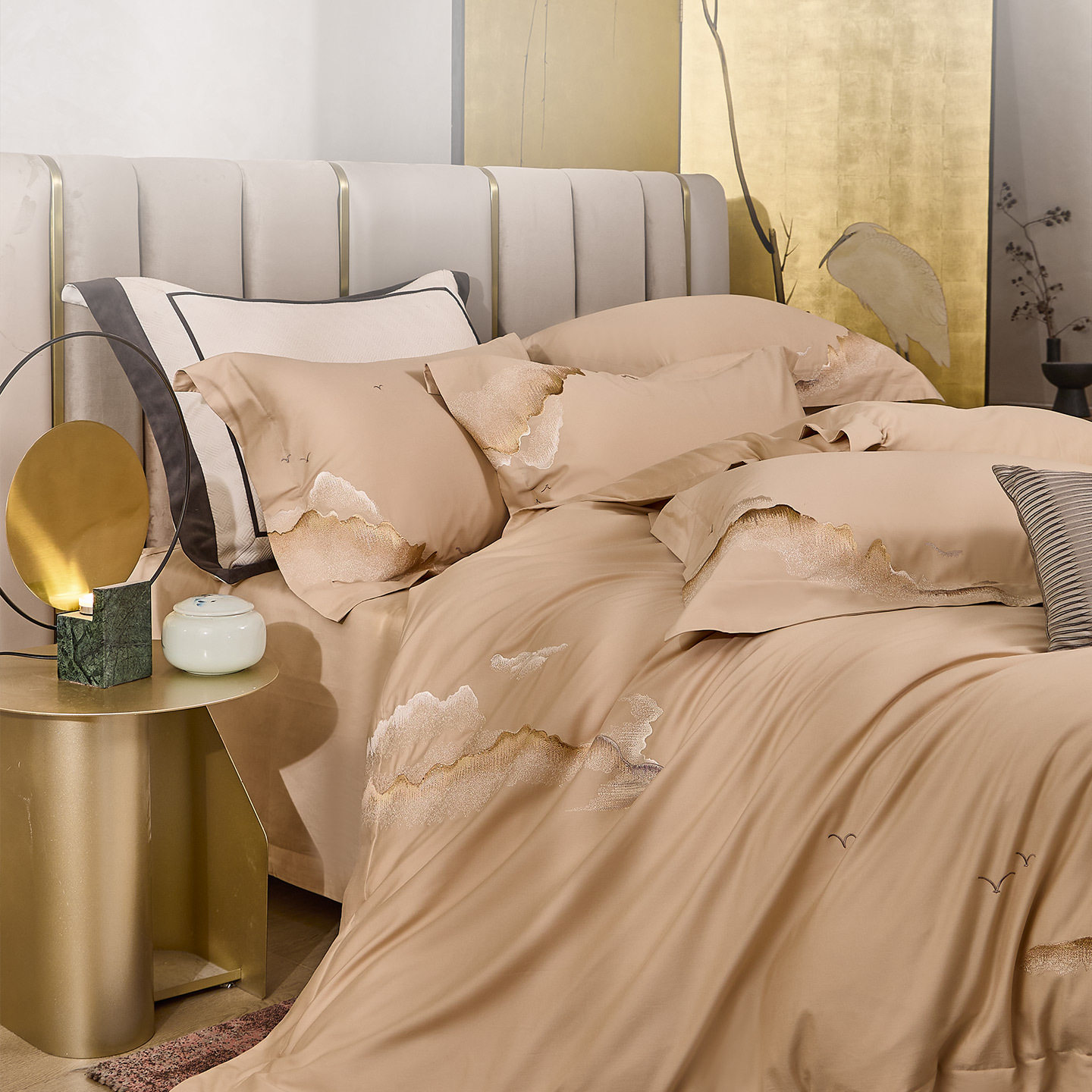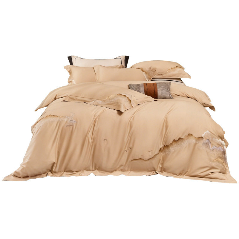远梦80支A类纯棉四件套绣幛云罗华庭香颂新中式 套件轻奢刺绣床品