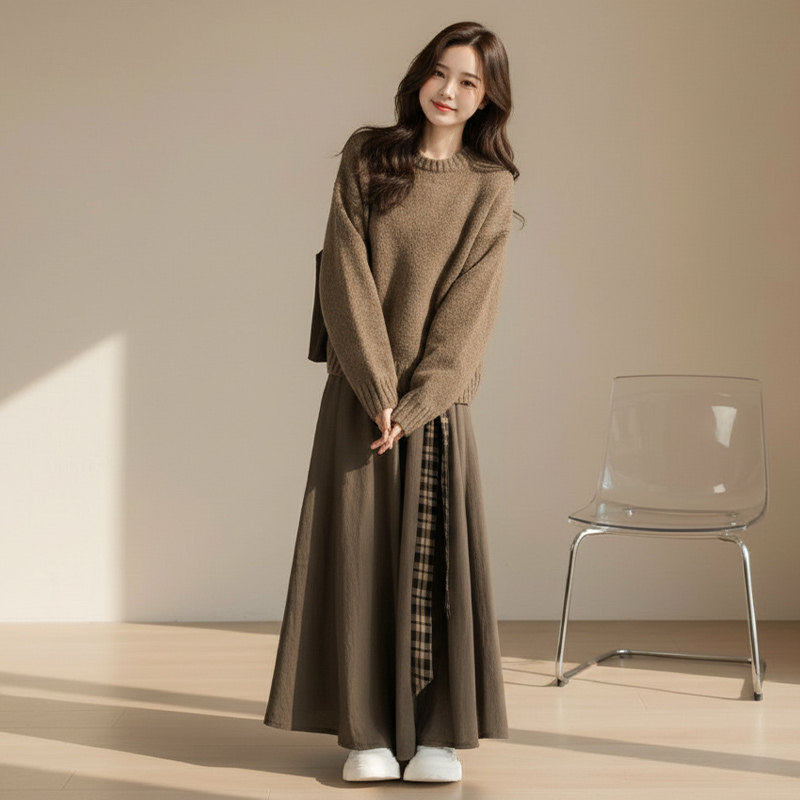 江浙沪富家千金裙裤 美拉德针织毛衣连衣裙子2025新款 今年流行爆款