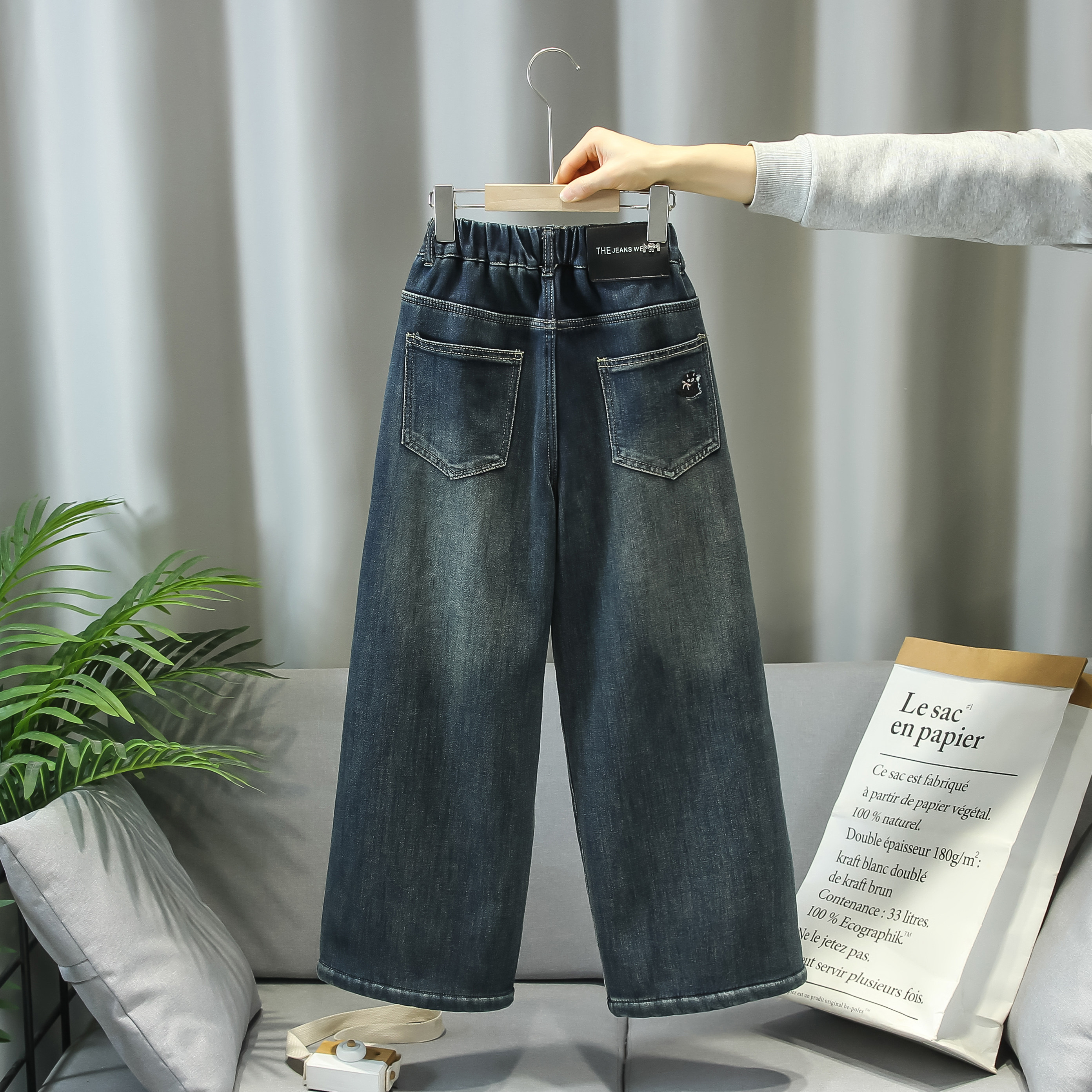 加绒宽松直筒阔腿裤 女童春秋牛仔裤 洋气冬装 中大儿童韩版 2025新款