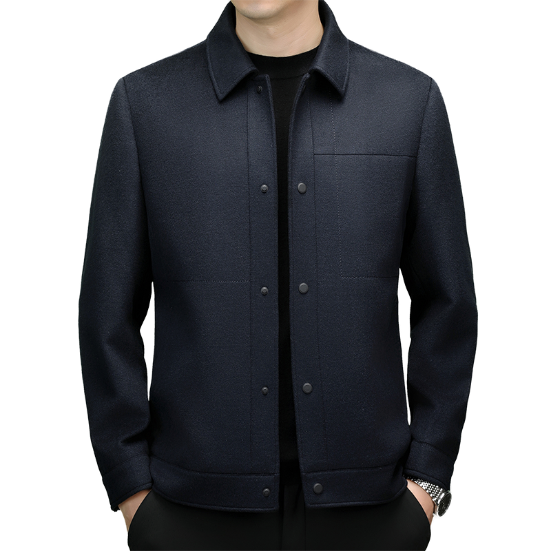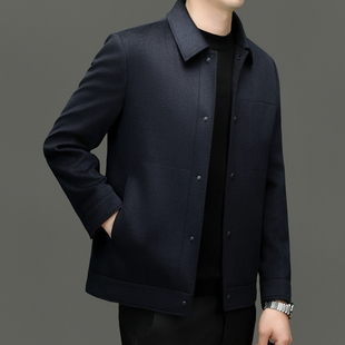 韩版 长款 呢子加厚风衣外套 2025春秋季 V37黑色高级感毛呢大衣男款