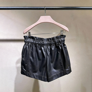 女 宽松百搭休闲裤 2026早春新款 小众黑色抽绳松紧腰皮质短裤