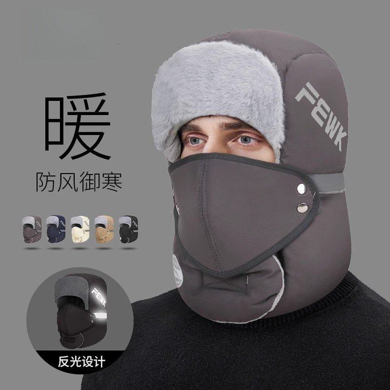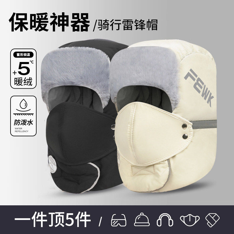 加绒厚防风东北防寒面罩骑车冬天护耳保暖 雷锋帽男款 帽子男士 冬季