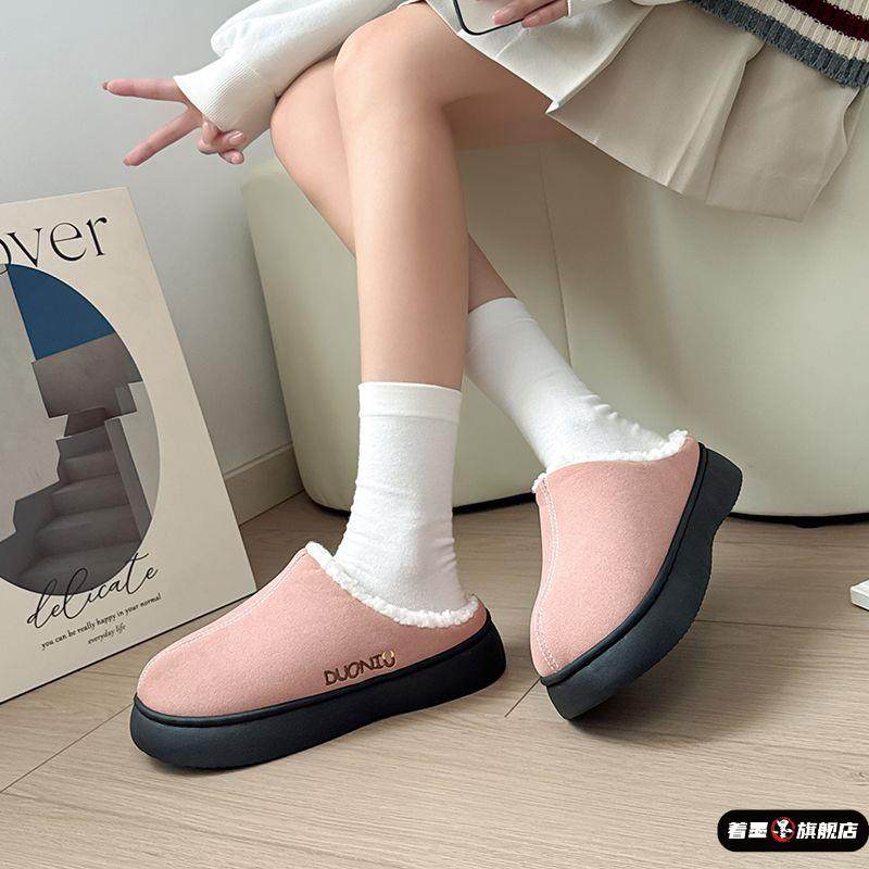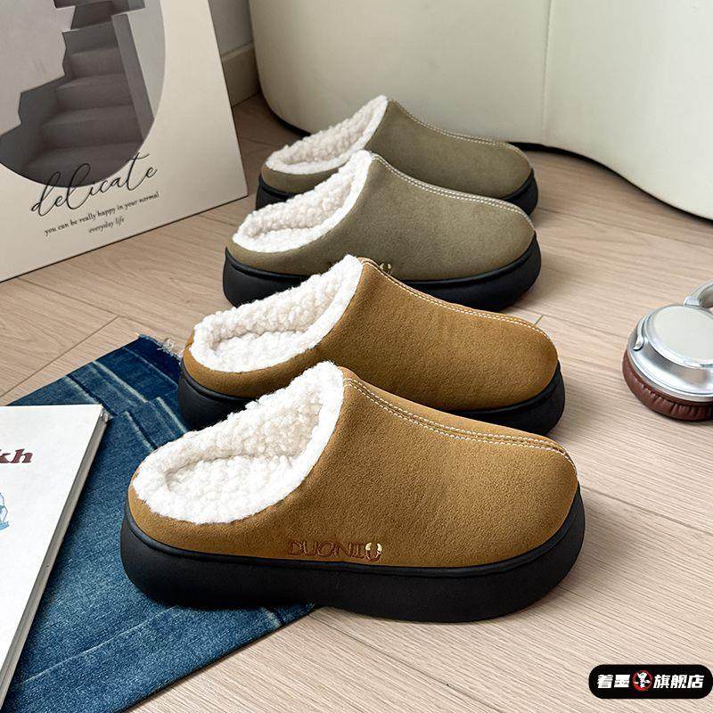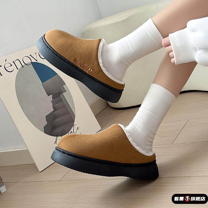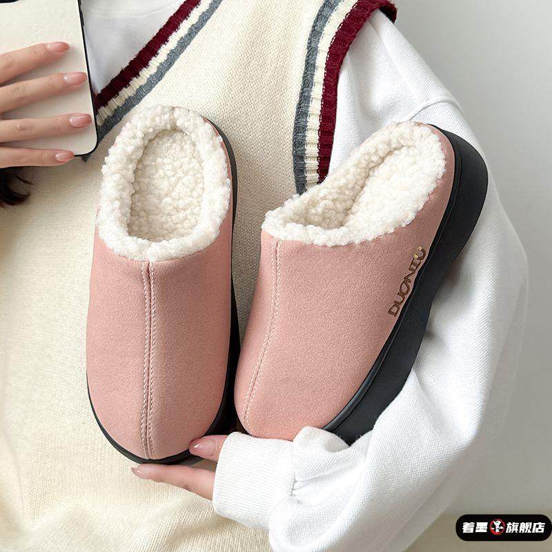 保暖厚底加绒耐磨防滑情侣毛毛拖鞋 秋冬季 女2025新款 踩屎感棉拖鞋