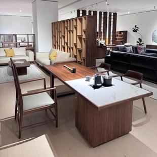老板办公室新中式 茶台家用客厅简约高级感黑色茶桌 实木大板一体式