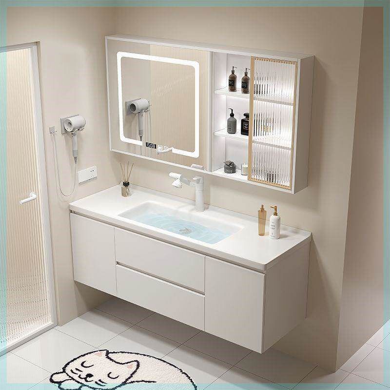 新款 浴室柜组合岩板无缝陶瓷一体盆洗漱台轻奢卫生间厕所洗手脸池