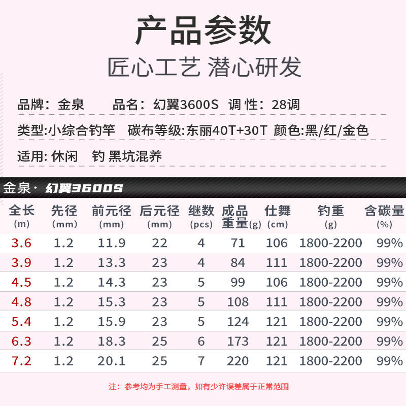 金泉幻翼3600S轻量小综合鱼竿手竿超轻超硬鲫鱼鲤鱼碳纤维台钓竿