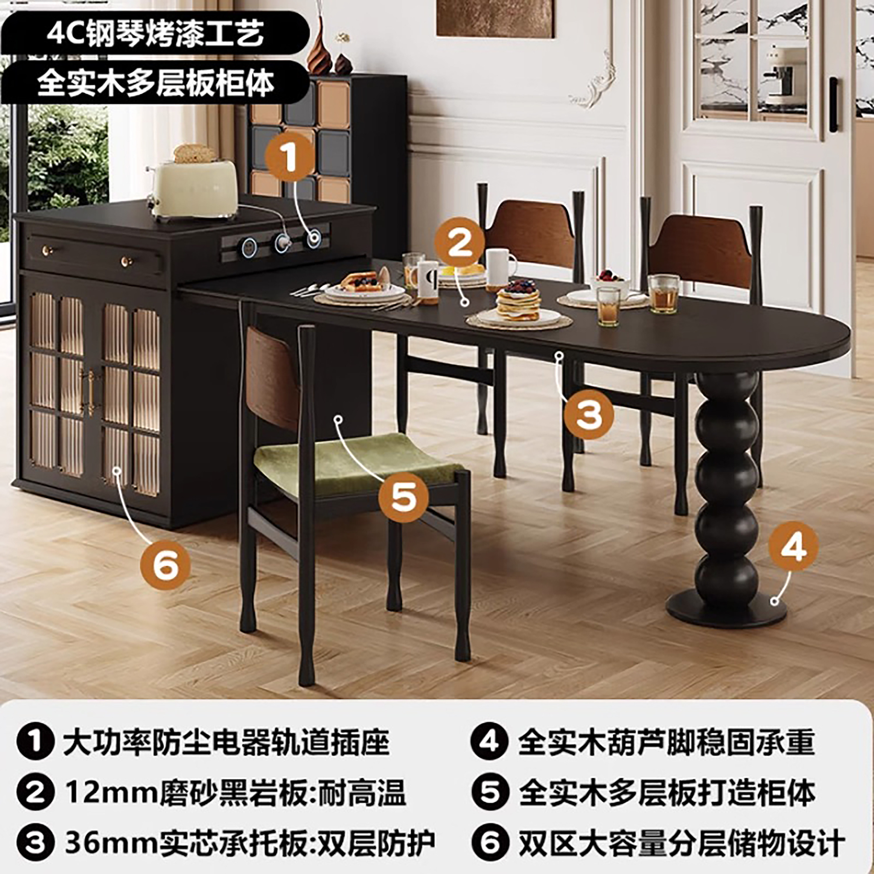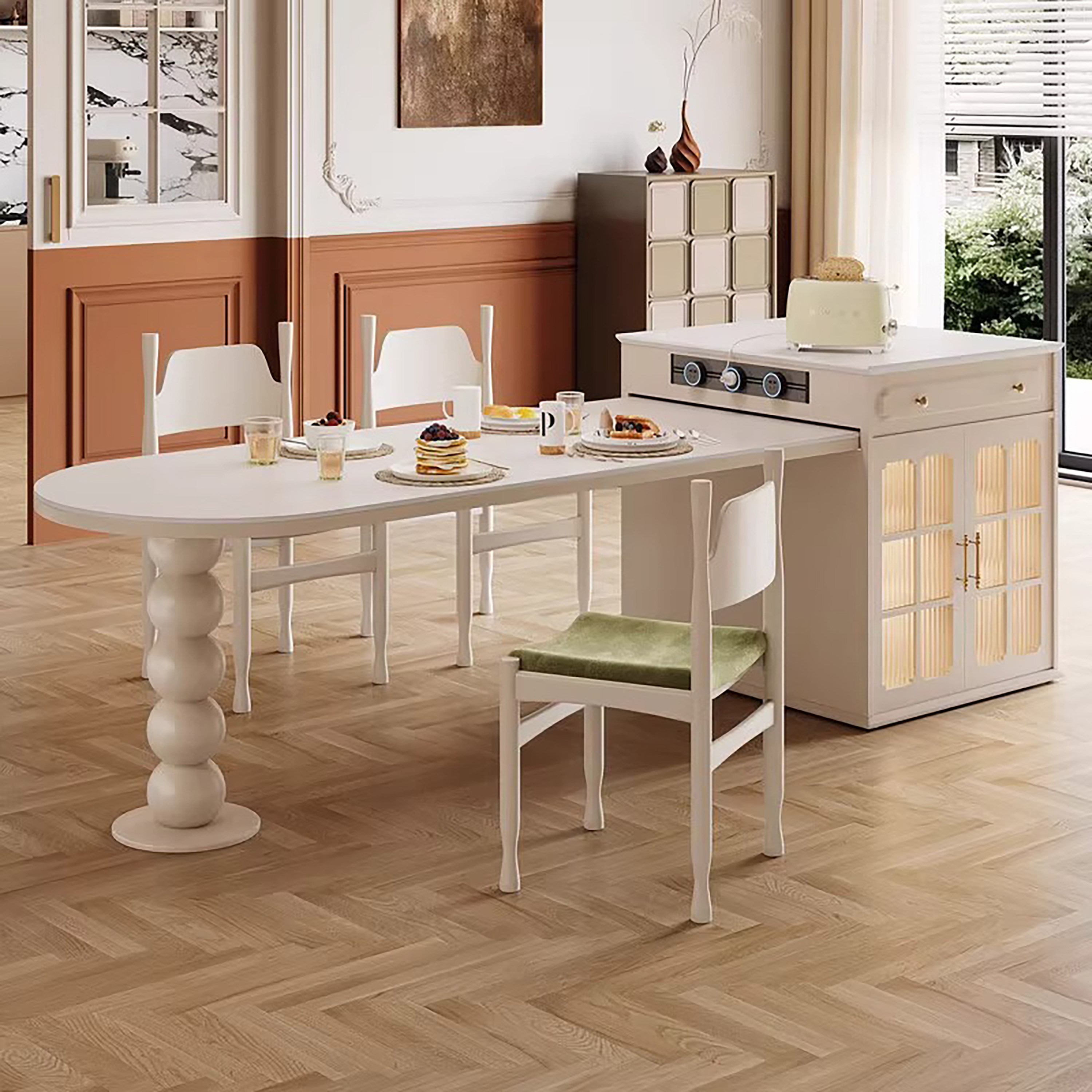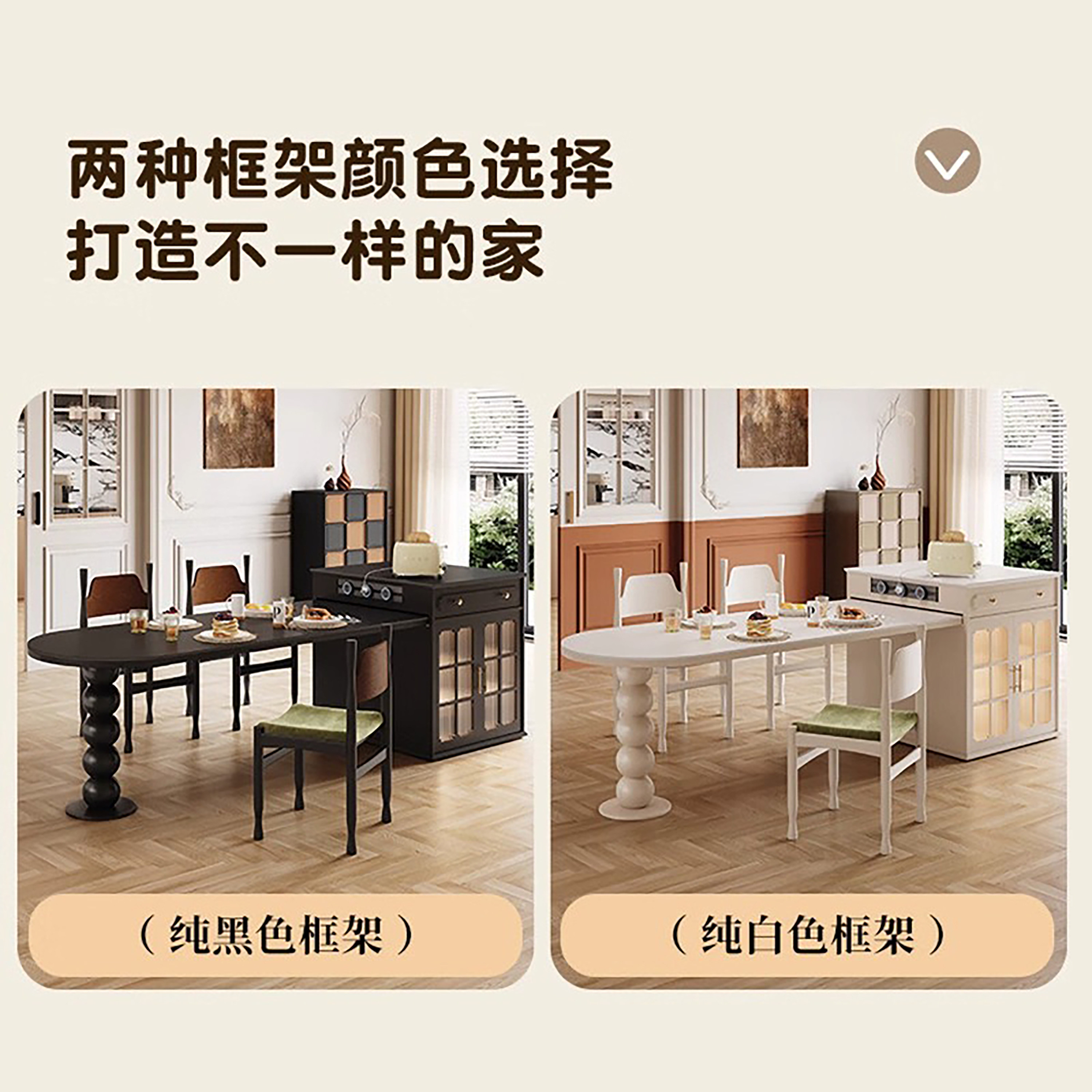 法式 复古风岛台餐桌一体可伸缩家用中岛台餐桌椅中古风岛台餐桌