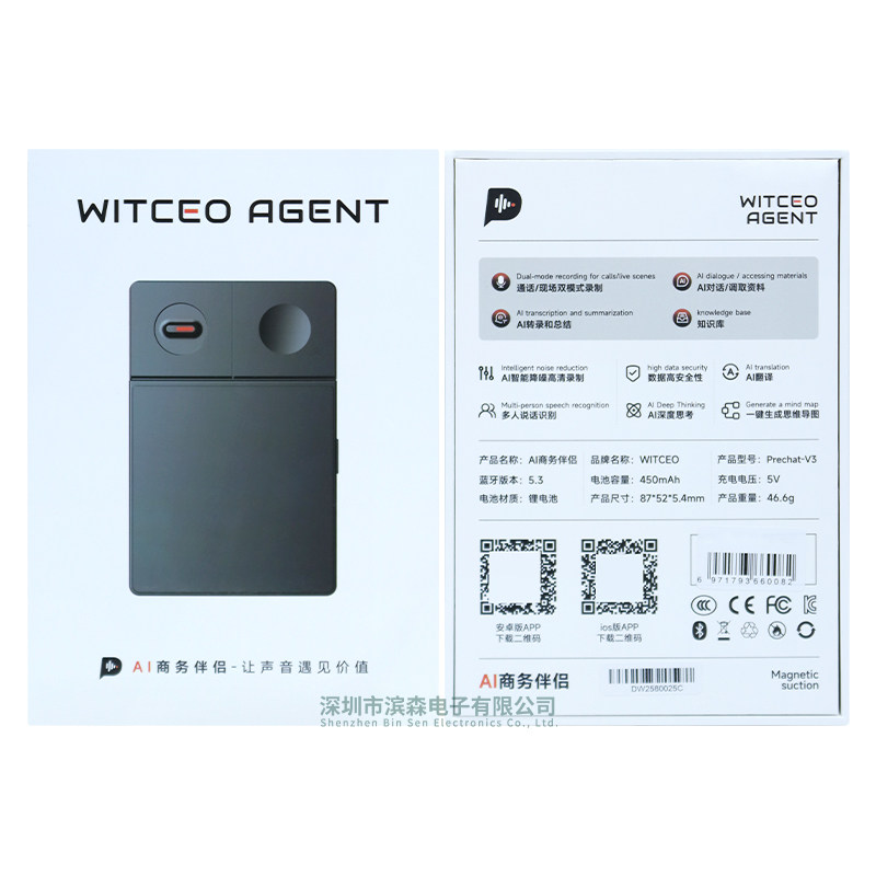 WITCEO智能AI商务伴侣录音卡笔神器会议纪要实时转写一键生成ppt
