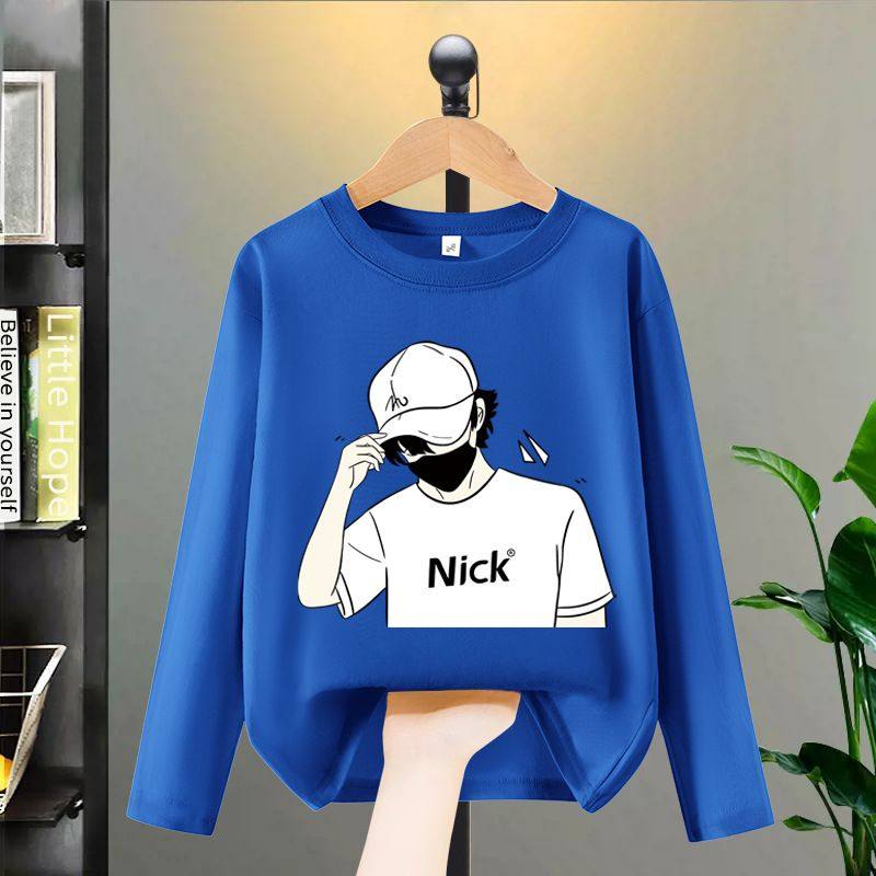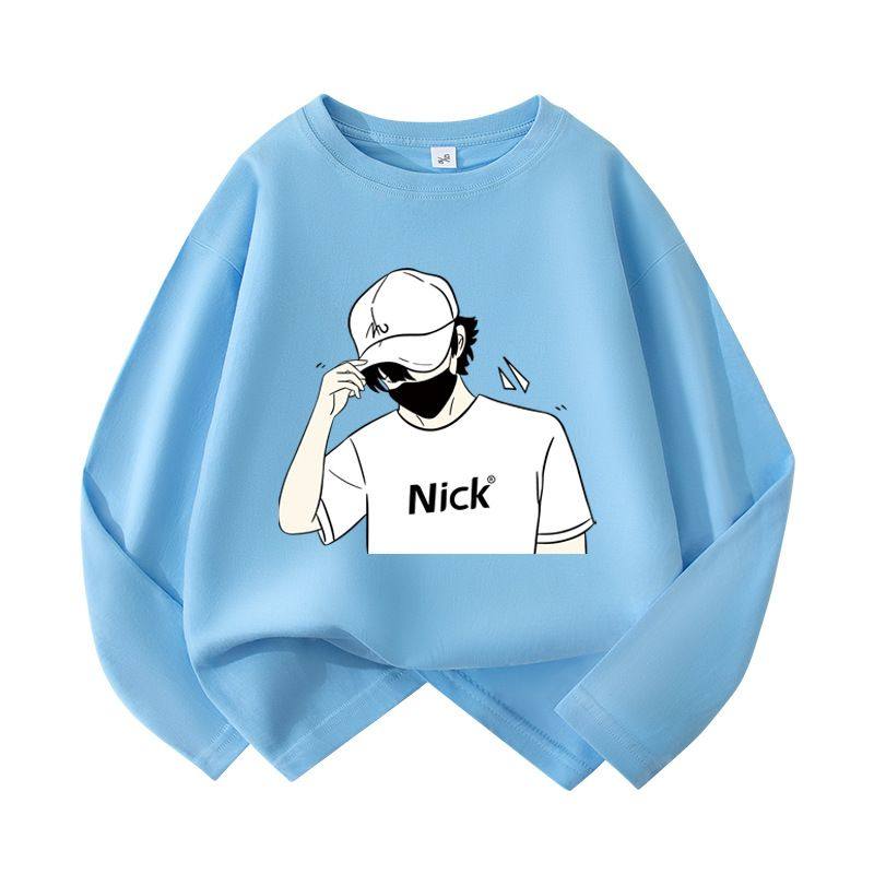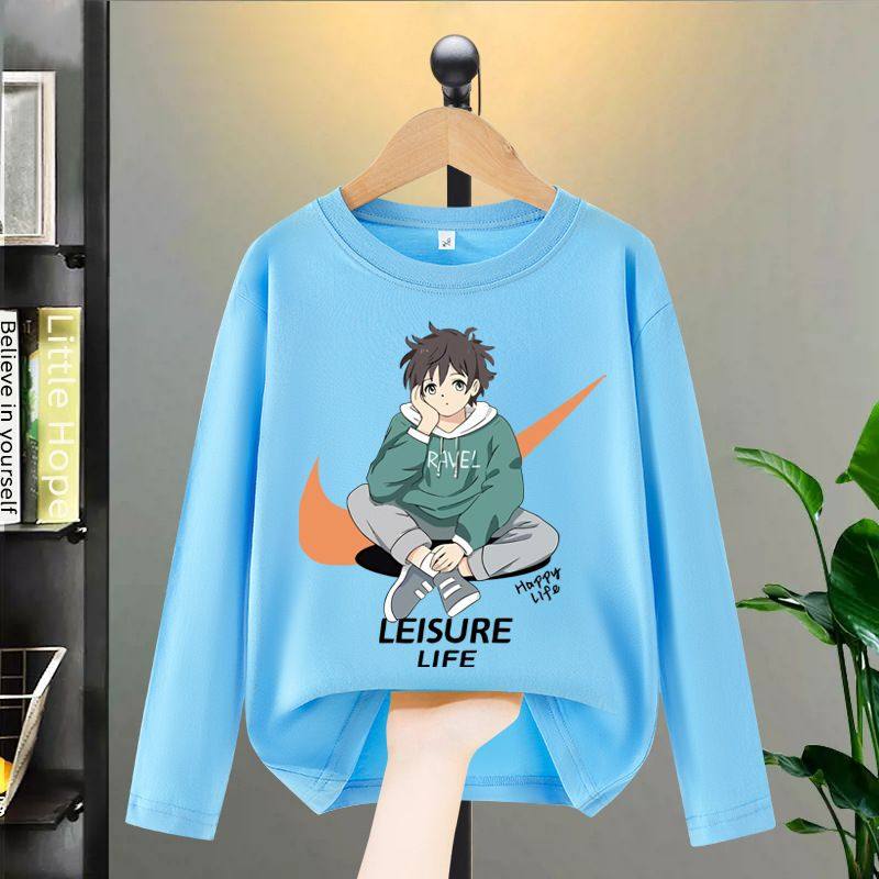 男童纯棉上衣圆领印花春秋款 t恤 中大童潮流休闲男孩套头儿童长袖