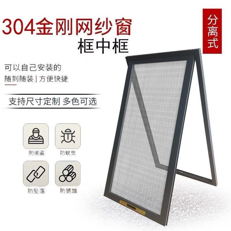 定制内开窗金刚网防盗纱窗304不锈钢框中框可拆卸防蚊隐形铝合金