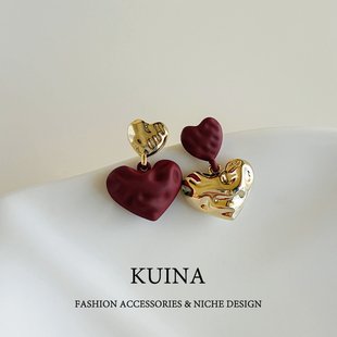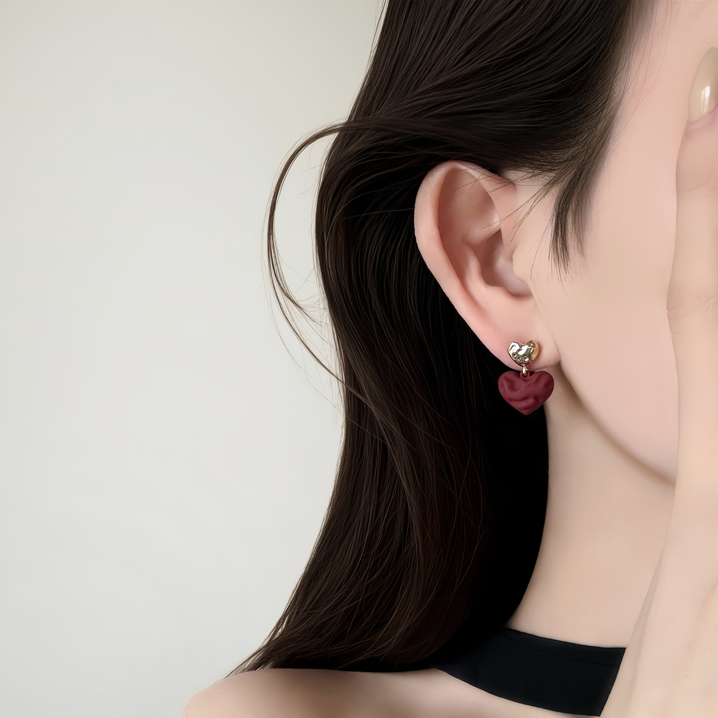 DOUDOUSTORE焦糖栗子 925银针美拉德几何耳钉氛围感复古耳环耳饰