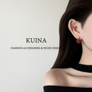 S999纯银新年红色四叶草耳钉小众设计高级耳饰2025新爆款 耳夹耳环