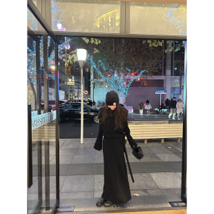 毛衣女春A字开叉半身长裙 羊毛绑带喇叭袖 NanaByNana 焦糖黑巧