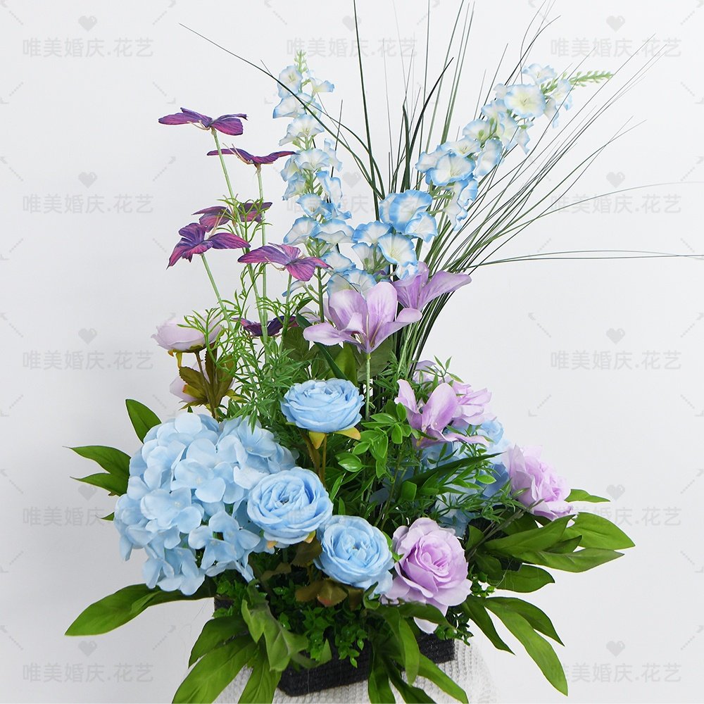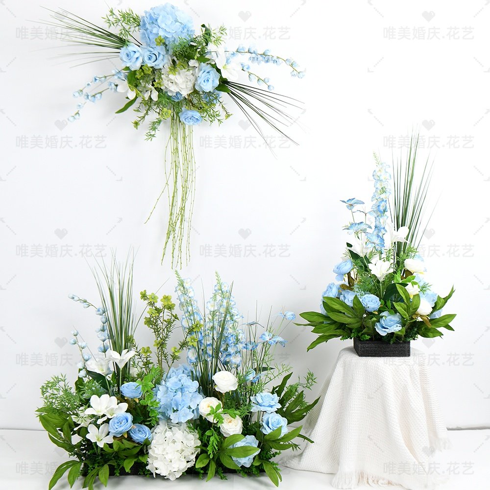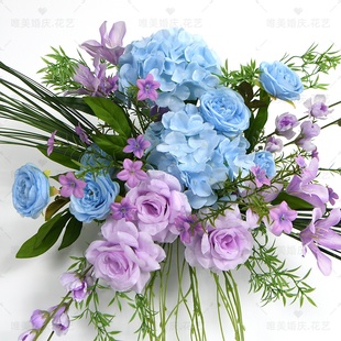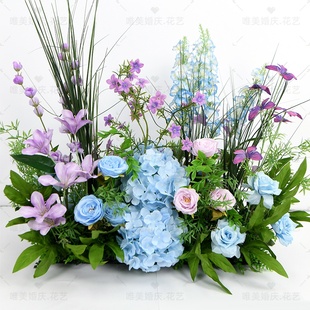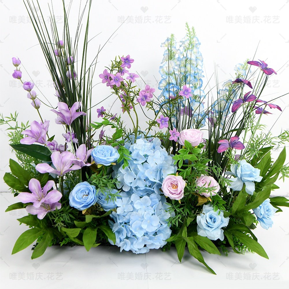 婚庆地排花森系花排装 饰布置婚礼仿真花假花路引花T台花艺莫奈风