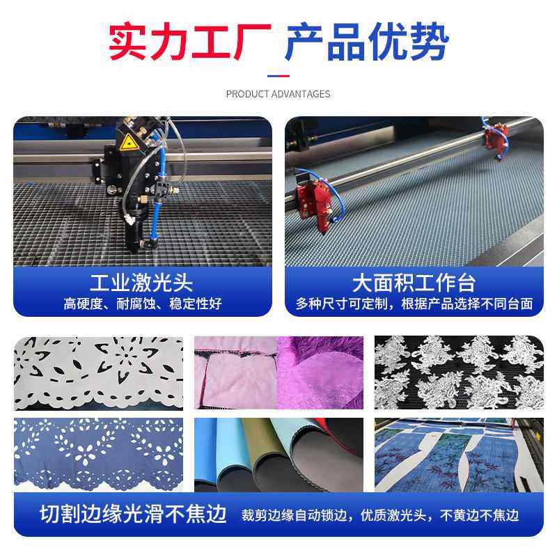 毛绒布料玩偶窗帘纱布蕾丝泳衣骑行服棉麻布全景送料激光切割机