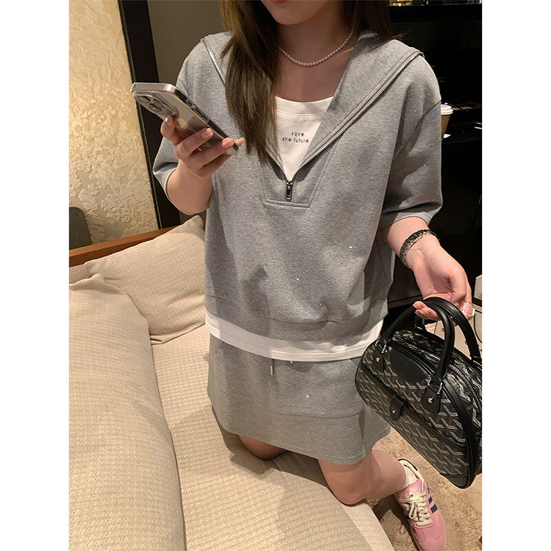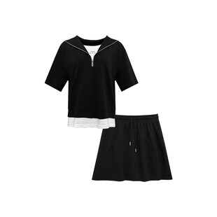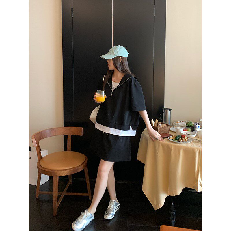 休闲宽松显度拼接短袖 新款 T恤卫裙胖mm女两件套 夏季 NAZ那子大码