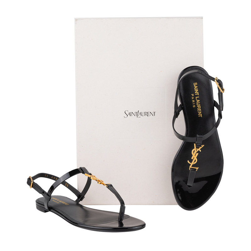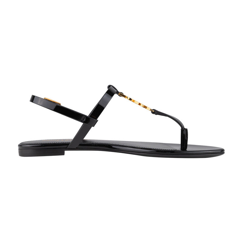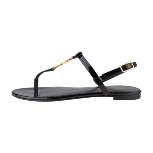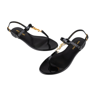 SAINT 推广 LAURENT圣罗兰女士漆皮金色字母平底一字带凉鞋
