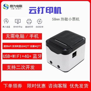 云打印机58mm热敏小票真人语音4G全网通MQTT外卖云打印机