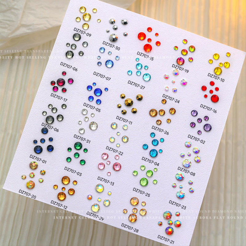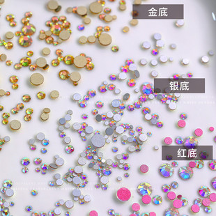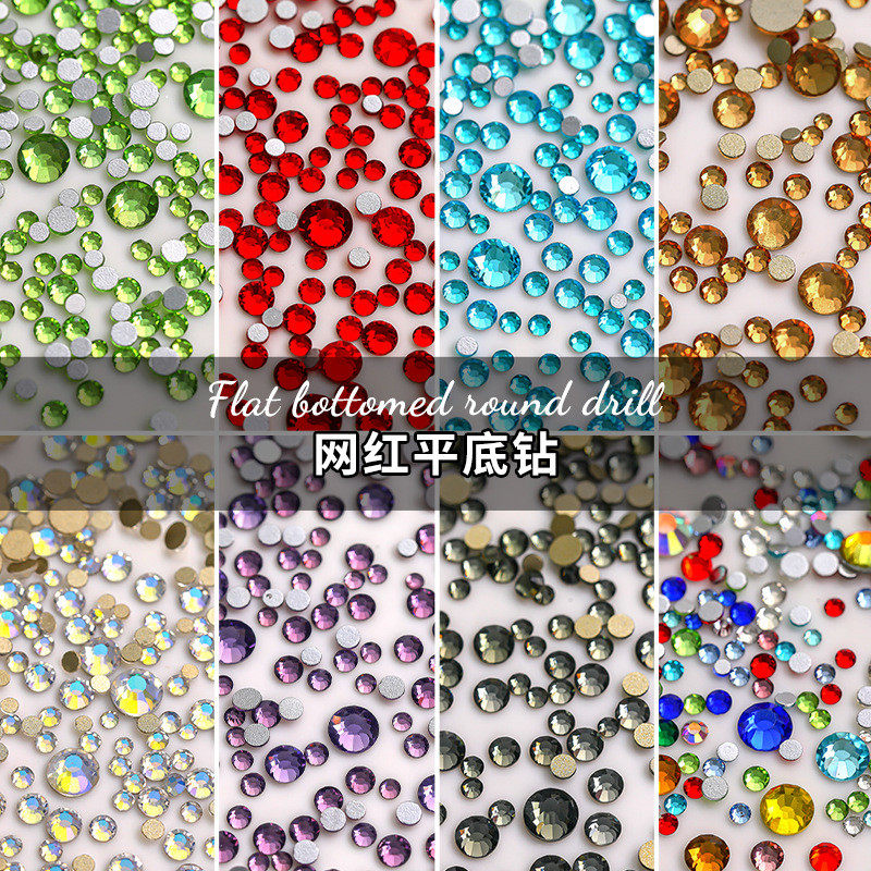 网红diy美甲圆形平底钻彩色超闪水钻不掉底指甲贴钻