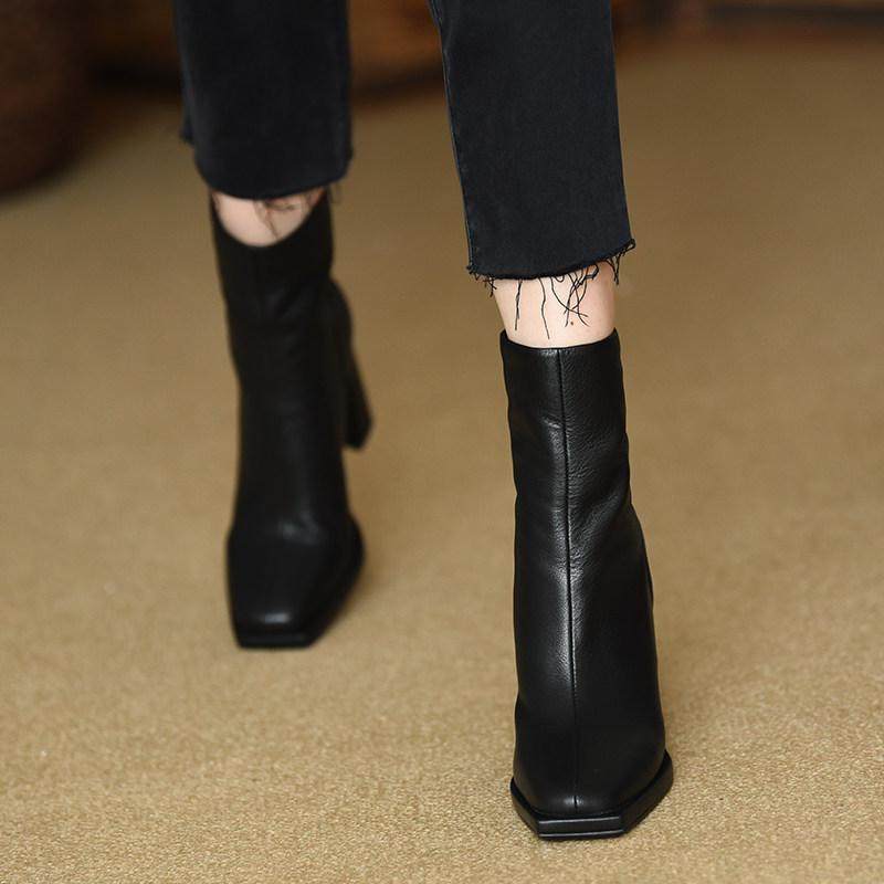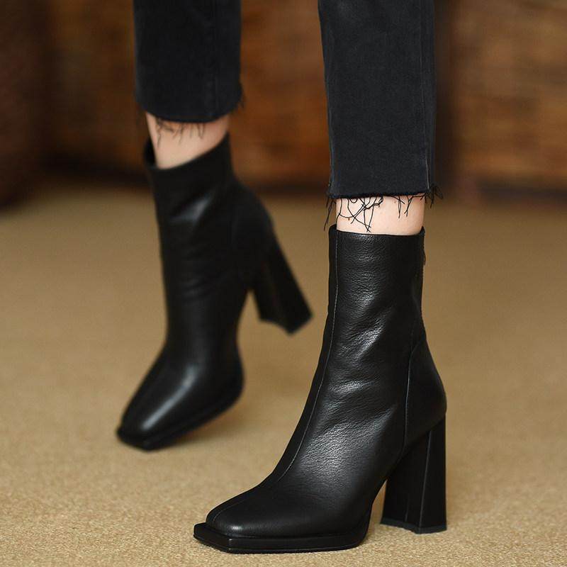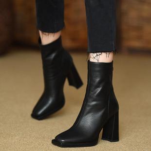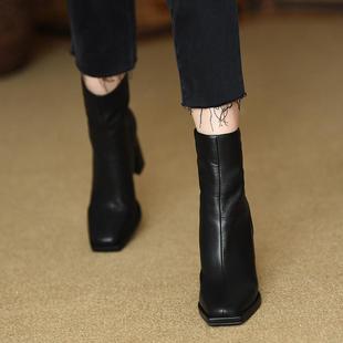 靴超软羊皮切尔西靴B7E1DDD5 瘦瘦短靴加绒时装 百丽女靴冬季 新款