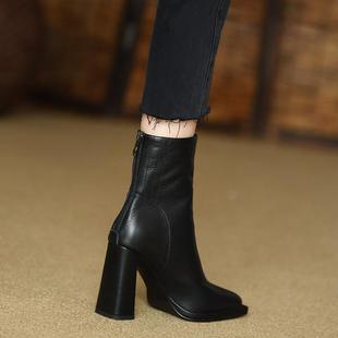 靴真皮运动靴加绒马丁靴女款 女靴时装 YAB160 新款 fed粗跟短靴冬季