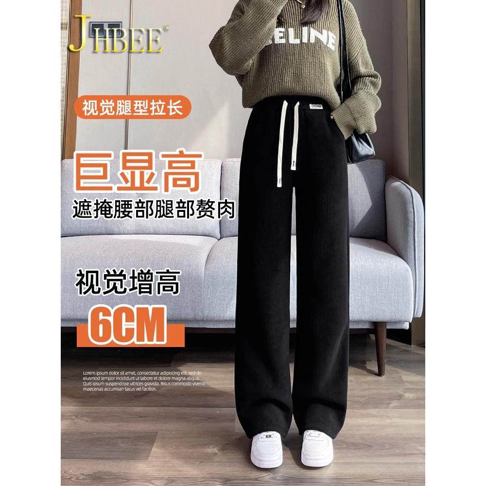 宽松直筒超厚裤 保暖棉裤 女士灯芯绒外穿加厚加绒冬季 羊羔绒阔腿裤