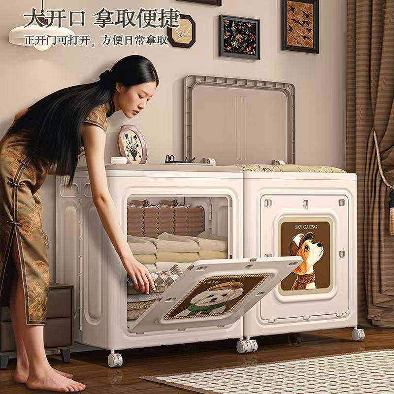 免安装 折叠收纳箱多层塑料箱多功能家用卧室客厅杂物储物柜可移动