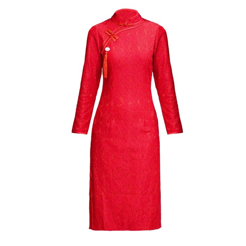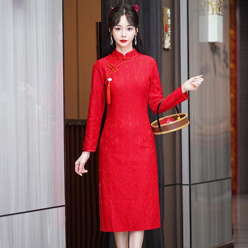 秋款 老上海改良长款 年轻款 冬款 连衣裙 中袖 年会演出旗袍2023年新款