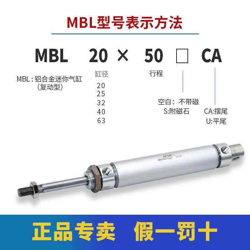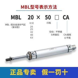 亚德客铝合金迷你气缸MBL20X25X32X40X50X75X100X125X150X200CA