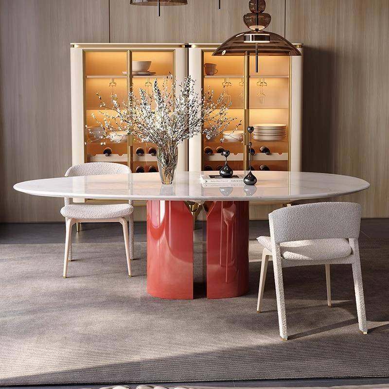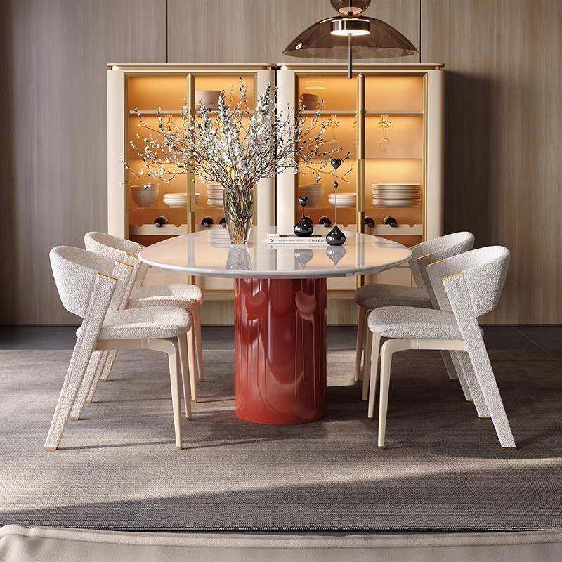 纯天然大理石餐桌圆形奢石系列白冰玉透光意式 极简圆形转盘餐桌椅