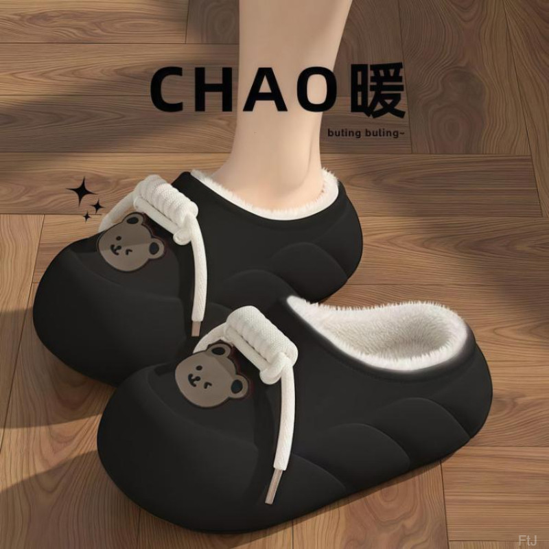 加绒保暖情侣 家居家用室内防滑厚底男可爱毛毛拖鞋 棉拖鞋 女士冬季
