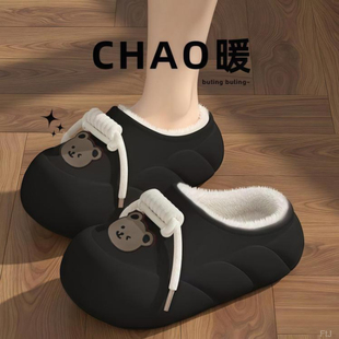 室内家居家用保暖加绒毛毛情侣厚底春秋男 2025新款 棉拖鞋 女士冬季