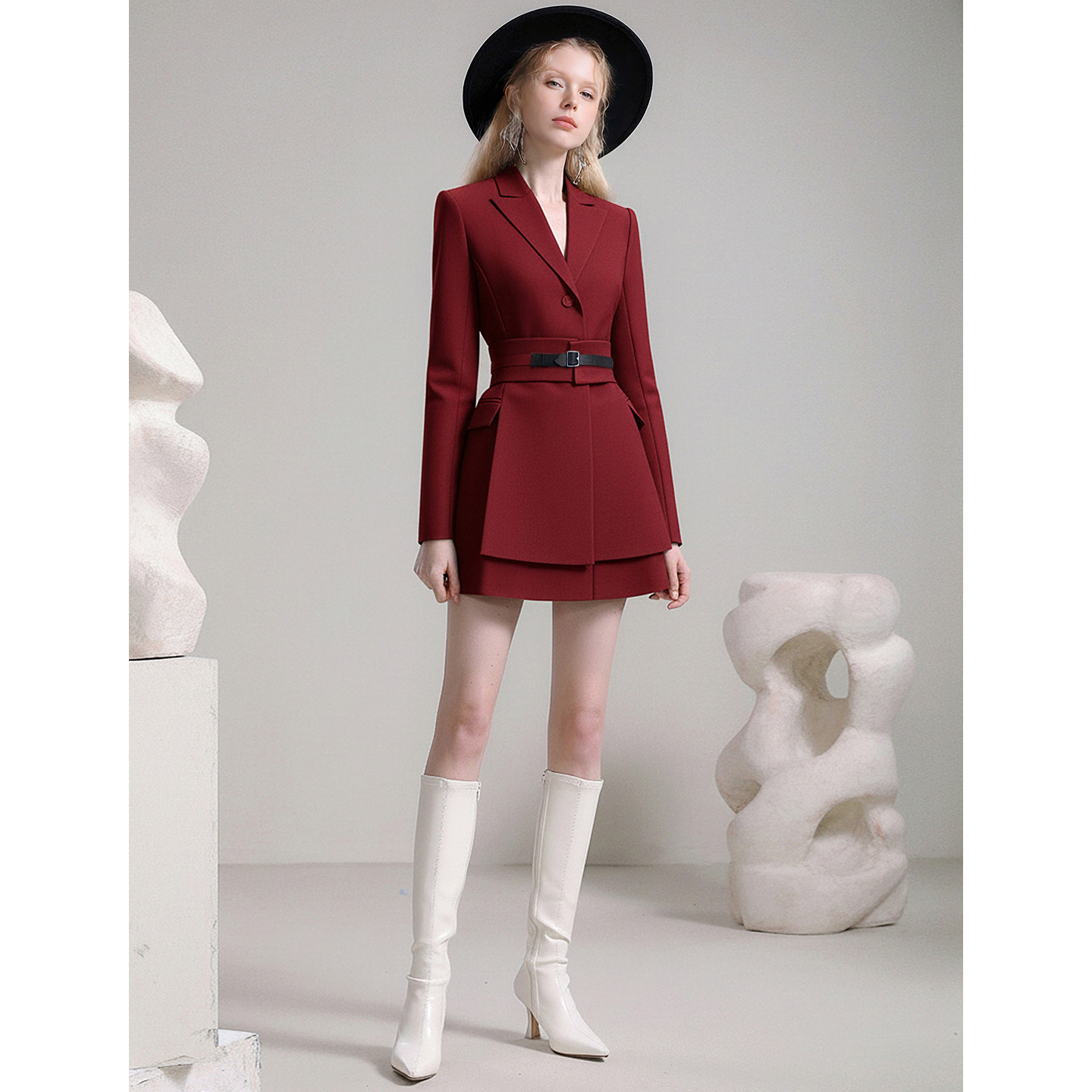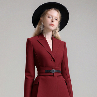 腰封西装 茬客 新款 气质优雅风红色连衣裙2026春季 收腰短裙 知雅