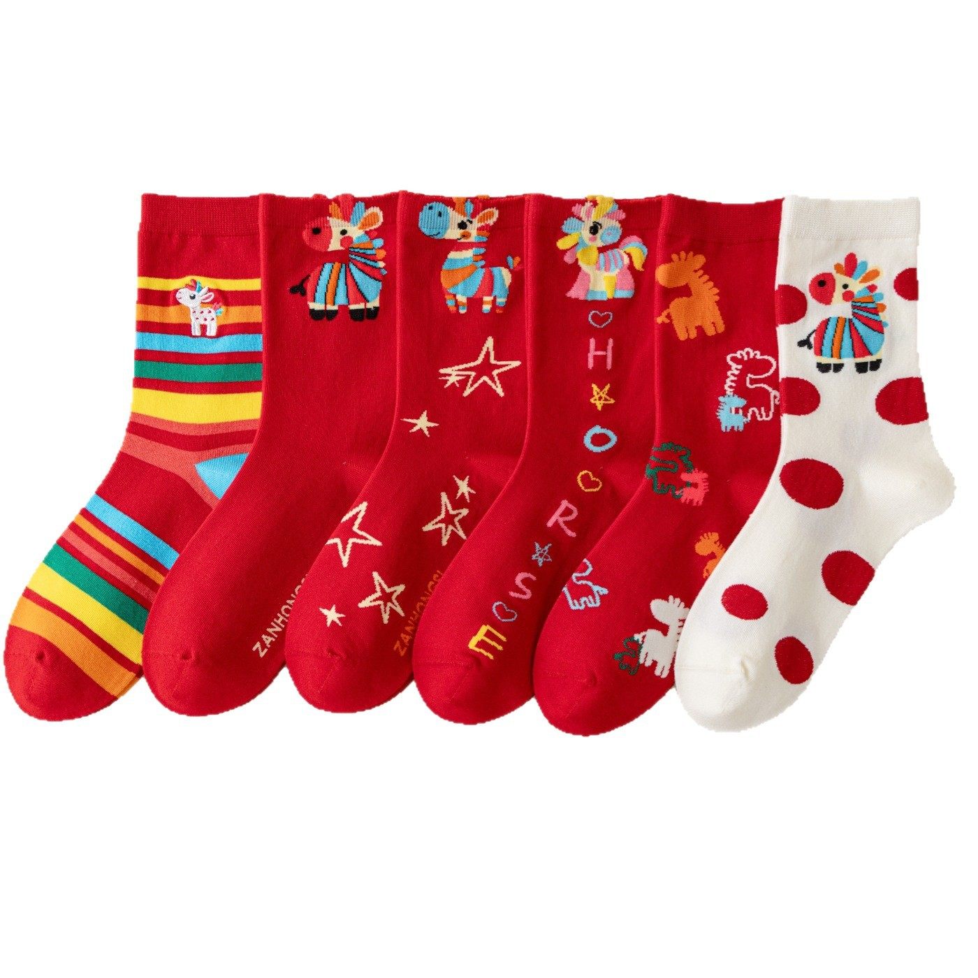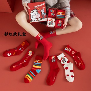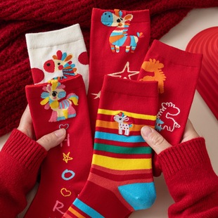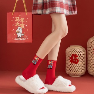 马年本命年国潮文字大红新年袜子男女暴富好运喜乐男女中筒鸿运袜