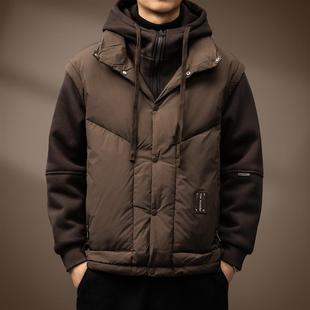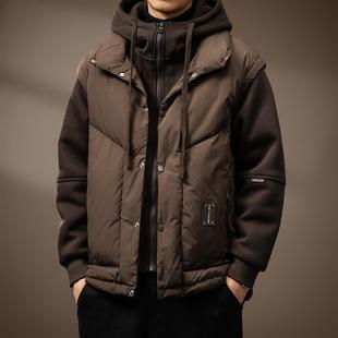 鸭绒保暖风衣防泼水棉服 冬季 安踏雪壳羽绒服四防短款 羽绒外套男款