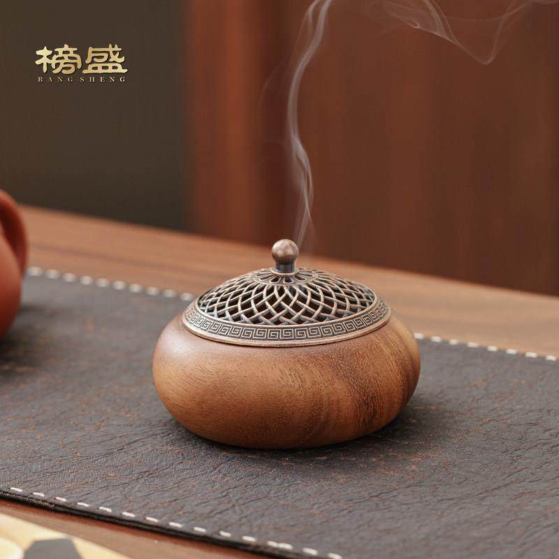 榜盛胡桃木实木香炉家用室内沉香茶道禅意香熏炉底座中式 创意摆件