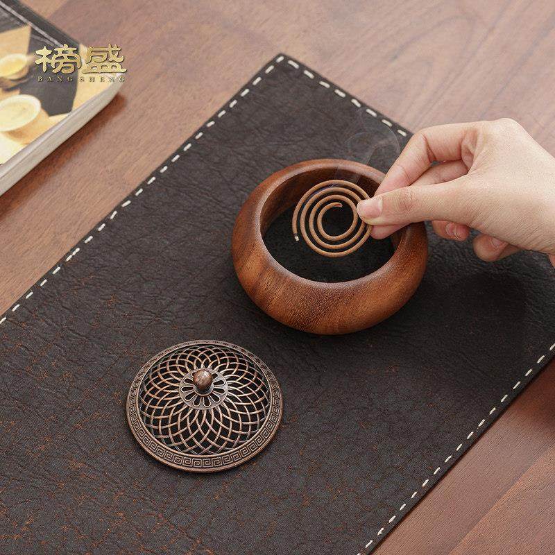 胡桃木茶道香炉家用沉香香料香薰炉香插线香底座小檀香盘香架实木