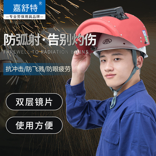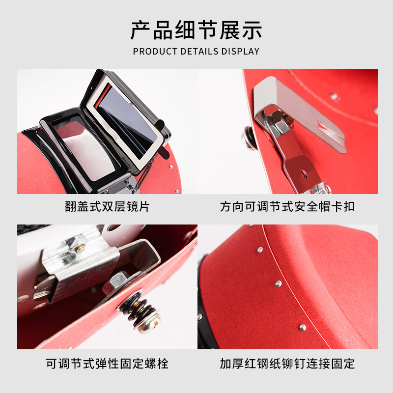 焊工专用带安全帽焊帽头戴式 电焊面罩红钢纸全脸R轻便隔热防护神